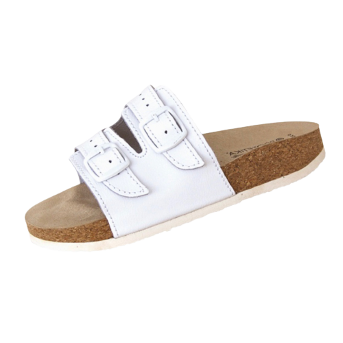 Ortopedicko-rehabilitační sandály na výlisku z přírodního korku s anatomicky tvarovanou stélkou.