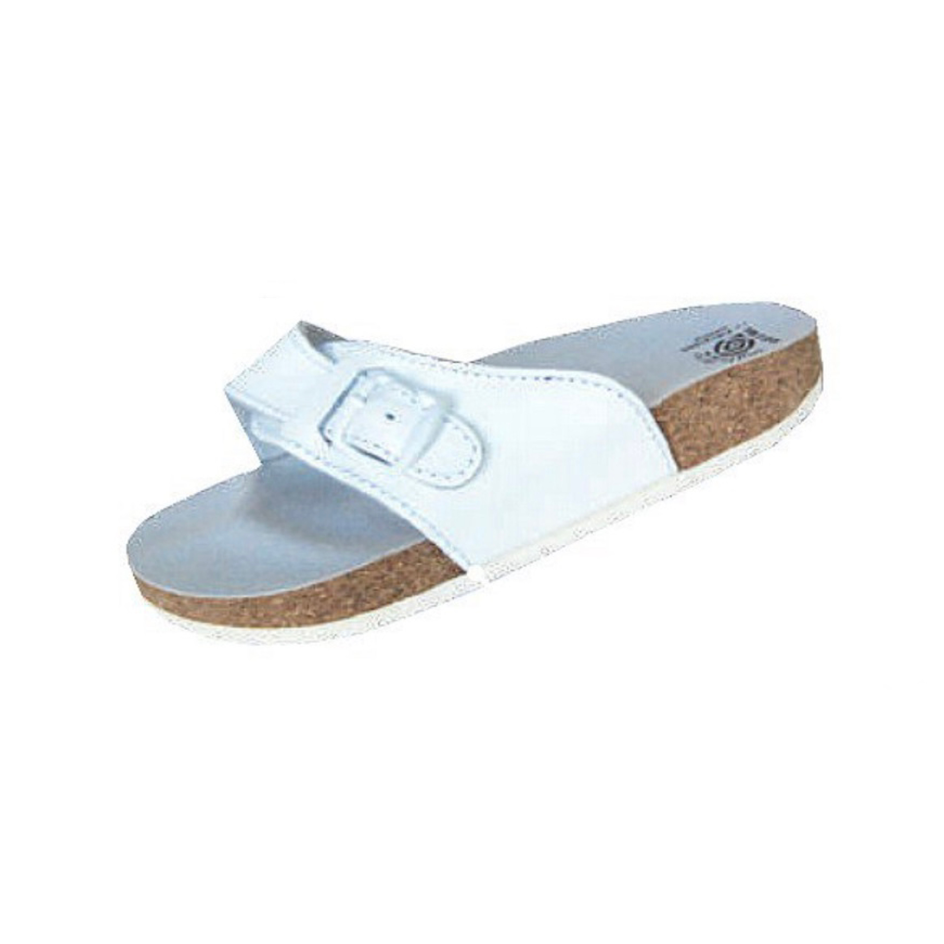 Rehabilitační sandály na korkovém výlisku s ortopedickou stélkou vhodné pro celodenní nošení v práci i jako domácí obuv.