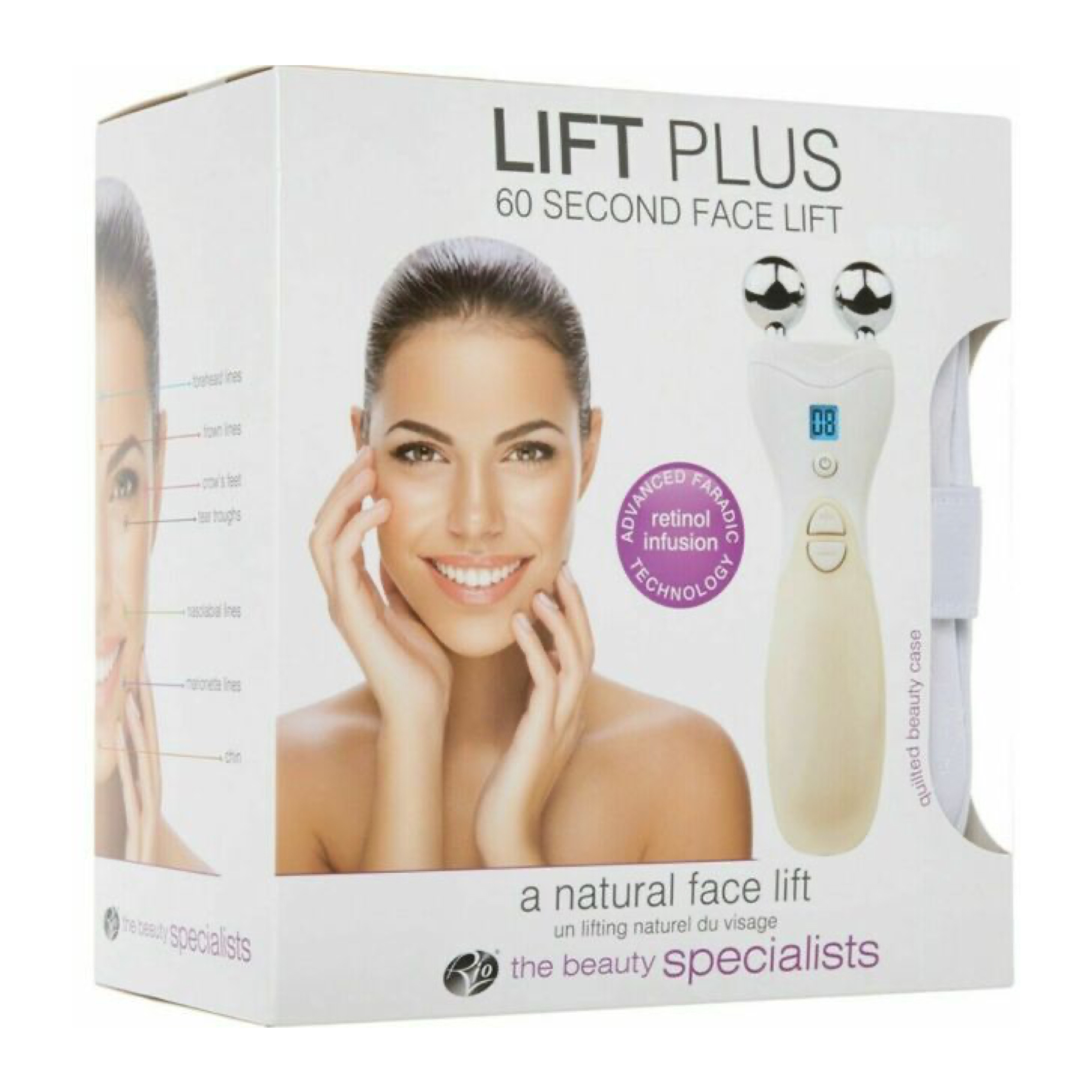 Popis produktu: Jak stárneme, naše svaly na tváři ztrácejí svůj tonus. Obličej padá, objevuje se druhá brada a narůstají vrásky. Lift Plus kombinuje dvě technologie kosmetických salonů pro zvedání, omlazení a rekonstrukci pleti. Již více než 40 let se v salonech krásy využívá faradická tonizace s EMS (Elektrická stimulace svalů) pro jemné stahování a uvolňování obličejových svalů pro zvedání a zpevnění pleti. Tato stimulace také zvyšuje cirkulaci, což přináší více kyslíku do kožních buněk a rychleji odstraňuje toxiny, zanechává kůži omlazenou. Rovněž provádí lymfatickou drenáž.