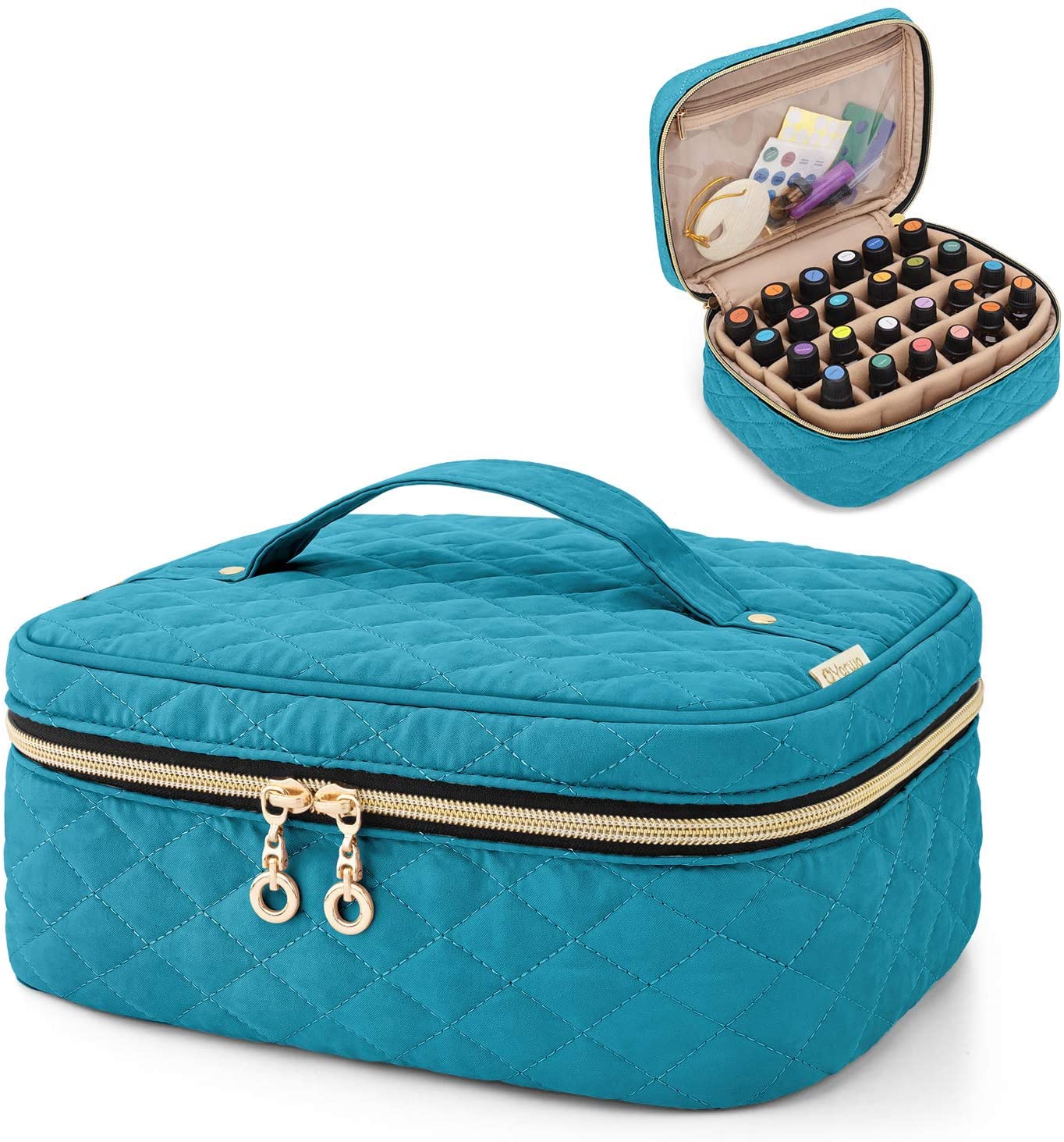 Zpracování a přenosnost: taška na uchovávání vonných olejů vyrobená z textilní voděodolné tkaniny, úhledných švů a zlatého obousměrného zipu, je velmi stylová a elegantní. Vyztužená horní rukojeť je vhodná pro stabilní přenášení lahví olejů kdekoli.
