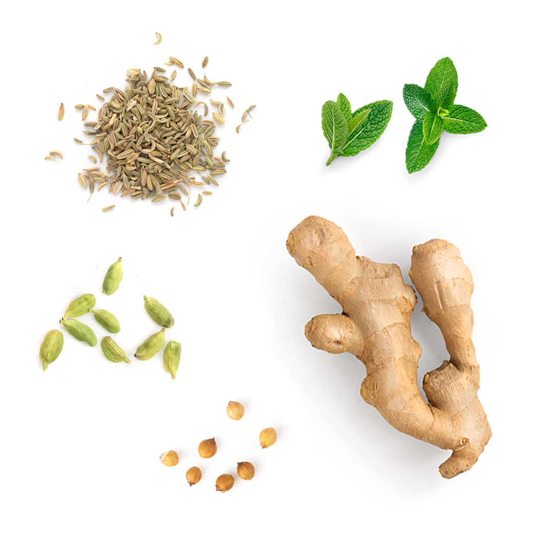 - Směs vyvinutá s esenciálními oleji Máta peprná, Semínko koriandru, Zázvor, Kmín, Kardamon, Fenykl a Badián