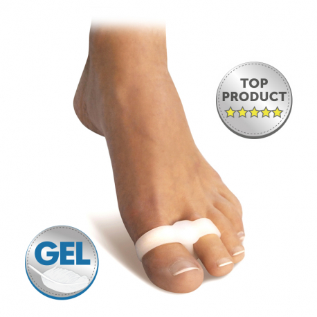 Dvojitý kroužek navléknutý na palec a druhý prst dokonale fixuje korektor v prostoru mezi prsty. Měkký gel zajišťuje mimořádnou měkkost a pružnost výrobku. Zabraňuje tření a odřeninám.