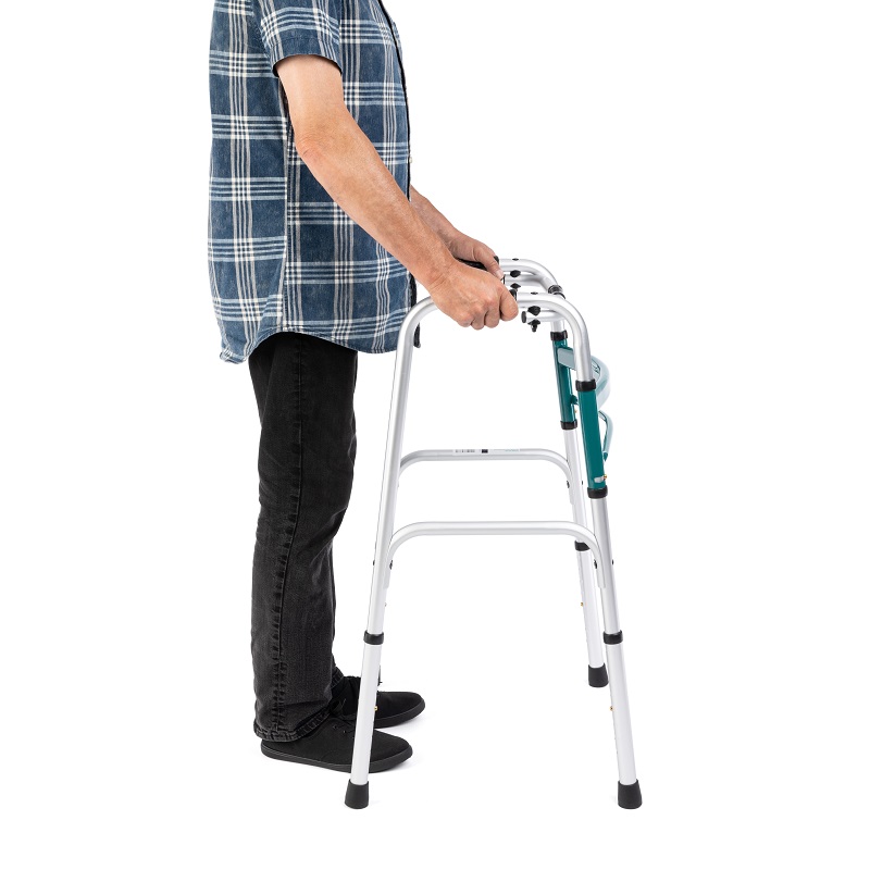 Skládací chodítko je vyrobeno z vyztuženého, eloxovaného, hliníkového rámu a má širokou oblast podpory. Měkké a pěnové rukojeti poskytují správnou stabilizaci a pohodlné používání. Díky nastavitelným nohám lze výšku chodítka nastavit podle výšky uživatele. Gumové hroty zabraňují klouzání chodítka. Složené chodítko zabírá málo místa, a proto jej lze snadno skladovat a přepravovat.