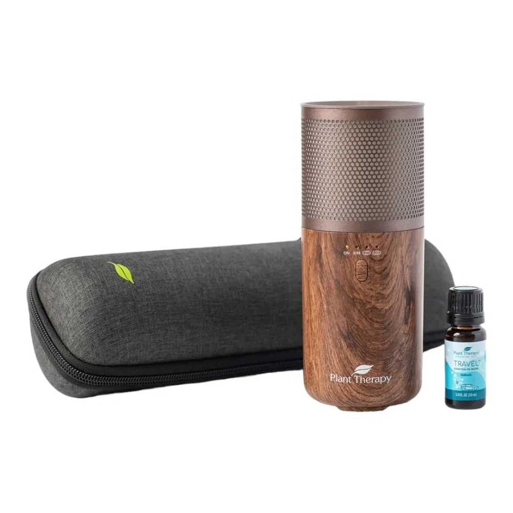 Vezměte své esenciální oleje všude s sebou s přenosným difuzérem Plant Therapy, směsí esenciálních olejů na cesty a cestovním balíčkem! Tento přenosný ultrazvukový difuzér může jít s vámi kamkoli a difúzovat až tři hodiny nepřetržitě jen na baterii.
