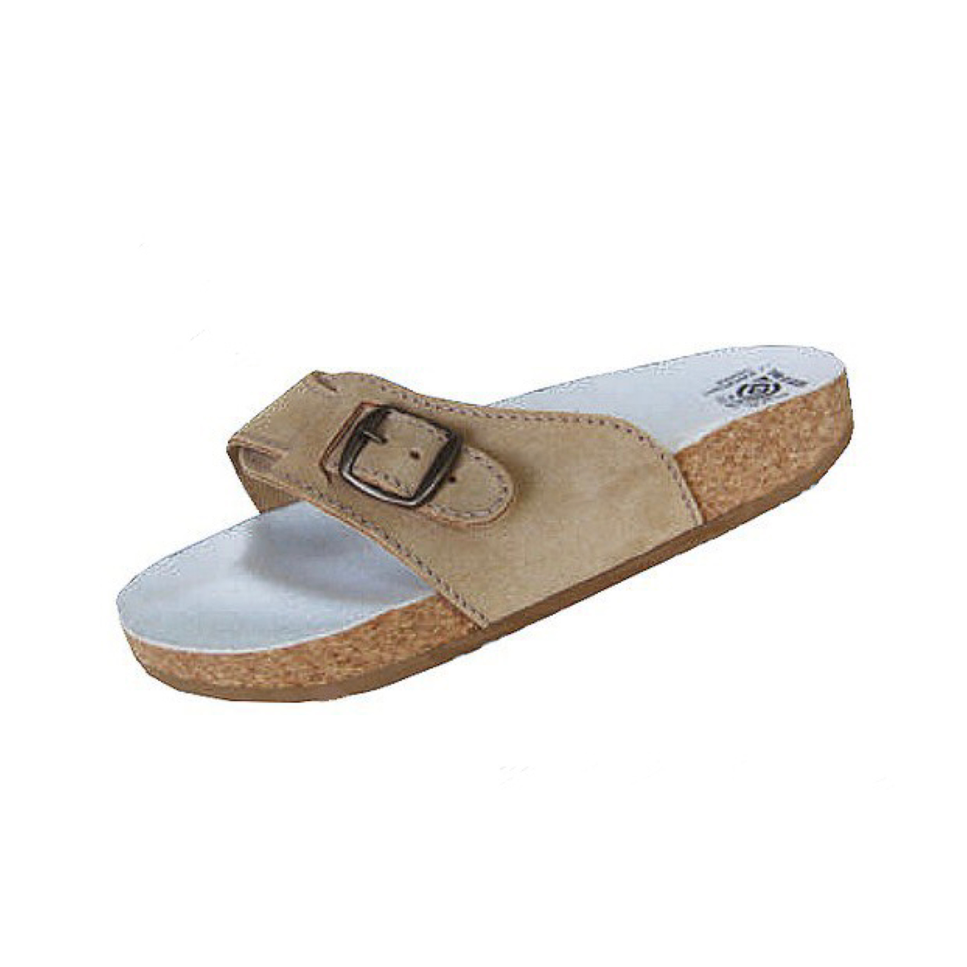 Rehabilitační sandály na korkovém výlisku s ortopedickou stélkou vhodné pro celodenní nošení v práci i jako domácí obuv.