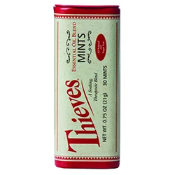 Skvělý závěr jídla – Thieves mints bonbóny pomáhají očistit dutinu ústní a usnadňují trávení. Síla a chuť Thieves v kombinaci s mátou vám zaručí svěží dech před každým jednáním a při každé příležitosti. Thieves Mints poskytují ideální způsob, jak představit a šířit přirozené výhody a sílu výrobků Young Living prosycených esenciálními oleji.